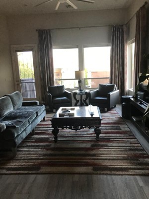 I decided we needed a larger rug in our room so I looked up the 9x12s and came up with about 6 options for our room. I wanted a more muted color, but the husband liked the bold colors of this rug. It really helped to have a tool to view the rug in our room. It came folded, and we had no problems getting it to lay flat. We think it looks great. I loved shopping for rugs on this site!