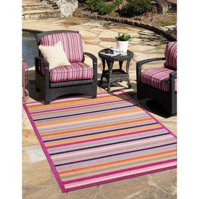 I was so happy shopping for this runner that you had a feature on your website to take a photo of where the runner would go. I checked out several that I liked and found the one whose colors looked perfect for my porch, and whose modern design I love. I just wish that I could have got one just one foot longer, and I would have been happier if non-slip padding were fused onto the bottom of the runner. At the short ends the runner curls up a bit, otherwise it looks quite nice on my porch and should help to have less wear and tear on the stain where the deck gets the most traffic.