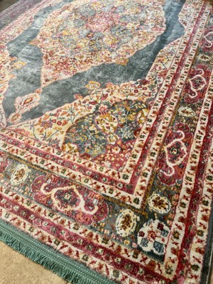 First of all, the tool offered to view the rugs in your rooms is extremely accurate and very helpful especially when purchasing rugs to layer. second, my order was shipped out hours after me placing it and it arrived in just a couple days. Lastly, as far as this rug goes; it is thick and feels like a quality rug. Im very impressed and pleased with the look and feel of this rug. I was though slightly disappointed that the colors were slightly more muted than the images but that is understandable when buying online. Still, An amazing value and great investment for my home and looks lovely in my bedroom