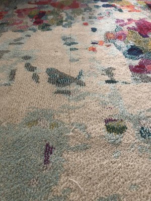 Got this as the transition rug from winter to spring and needed a good pop of color. It shipped super fast and couldn’t beat the price. Only issues are that the background isn’t quite as white not the colors quite as vibrant as shown in photo. Also, there was a line from where the thread appear got pulled in one spot. Wasn’t worth trying to ship back so I’ll probably put the coffee table over that spot. Definitely use a rug pad as well!