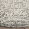 The rug's round shape and plush 1/4" pile height create a harmonious balance of comfort and aesthetics, making it an ideal centerpiece for any room. The refined color palette of ivory and grey is effortlessly versatile, complementing both contemporary and traditional decors.