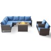 POCASSY L-Shaped Patio Sectional Sofa Set with Fire Pit Table, All Weather Brown Wicker Outdoor Furniture Set with Swivel Chair and Propane Fire Pit