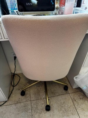 [This review was collected as part of a promotion.] Loving this new upholstered office chair from Martha Stewart! Very comfortable, easy to assemble, and simple design. The seat is extra wide so you don’t feel like you have to cram into a tiny chair when doing work. Best office chair I’ve sat in for a long time. It moves easily as well.
