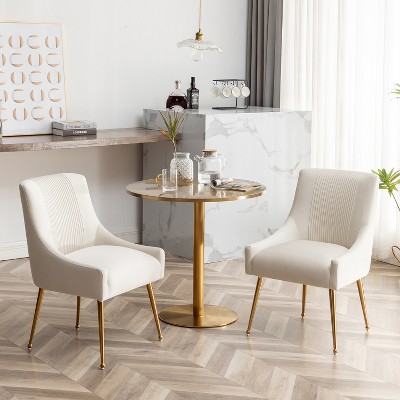 SEYNAR Modern Glam Boucle Pleated Velvet Dining Chair or Vanity Chair Set of 6 with Rear Handle