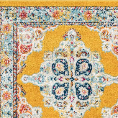 Bold and playful, the Parker Collection is a perfect combination of vintage styling and contemporary class. Based around a big, central medallion rendered with a subtle abrash for a distressed look, this on-trend collection is the perfect addition to your shabby chic, bohemian, or casual style. A range of colors from calming neutrals and pinks to bright yellows and multi-color options means the Parker collection has something for everyone. The medium-height polypropylene pile is soft underfoot and easy to clean, perfect for medium to high traffic areas like living rooms, dining rooms, and bedrooms.