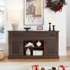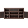 • Traditional Design: The TV cabinet features a traditional design with a classic wood look and decorative door panel patterns, suitable for traditional or country style home decor.