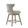 • Soft Upholstery and Open Back: Upholstered in light gray fabric, this stool offers a soft, inviting seat, while the open back design provides breathable comfort and visual appeal.