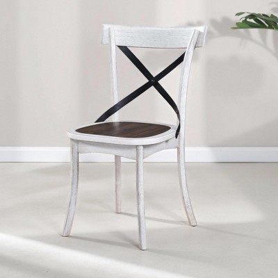 CAVINAS Farmhouse Wood Dining Chair with X-Back, Rustic Acacia Wood Frame, Country Style Kitchen or Dining Room Chair, Set of 2, Gray