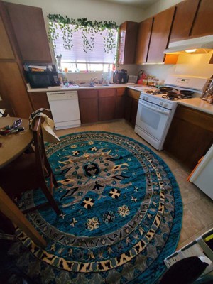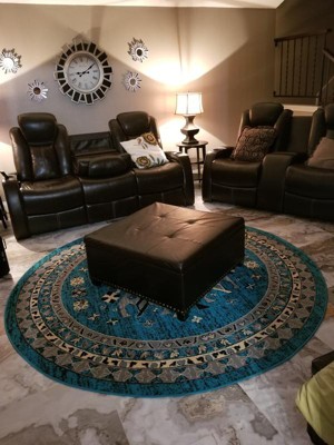 Unique Loom 7' 10 x 7' 10 Round Turquoise Taftan Oasis Area Rug