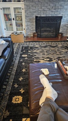This 9x12 is the magic carpet. Ordered this rug before purchasing our new dining table (Ikea) and dining chairs (overstock). This rug is elegant with loads of style and would compliment a variety of design styles.