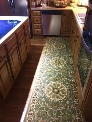 I bought the 2' 7 x 10' Chateau Runner Rug for our walk in closet, it is absolutely beautiful and looks so gorgeous against the glossy black painted floors in there! I've ordered from Rugs.com before and always had a great experience, this time was no different! We just moved into a new century old fixer upper with very well worn original wood floors... We won't be refinishing them (other than a couple of bedrooms) any time soon and so I'll be making several more rug purchases!