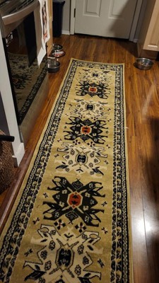 This runner was exactly as advertised. I love the length of the runner. Works well in my long hallway. Though once I received it the beige color in the rug was a bit lighter and I anticipated, This is why I gave it 4 stars. I still decided to keep it. Love the pattern.