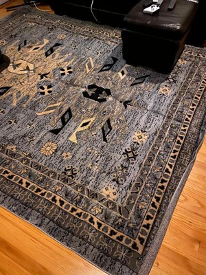 I love the look this rug gives my room. I don’t often see the black and golds in semi-traditional style rugs so I was excited to come across this one. Great value and quality for size and price! The 8x10 fit perfectly under our King Size bed.