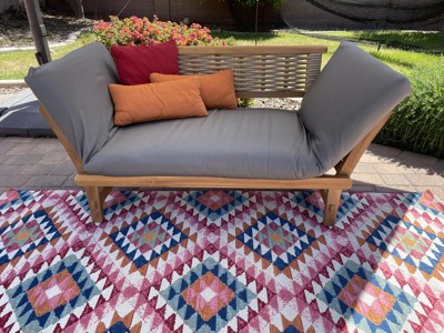 This rug looks great in blue by the pool area and still keeps the southwest look we love.