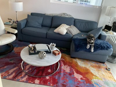Perfect rug for our beachfront condo. I have a puppy that has had accidents, young grandkids and a fella that only drinks red wine. I just could keep the old rug looking presentable. This new rug is so easy to clean. The colors are so vibrant and it fits beautifully.