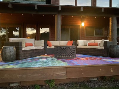 This outdoor rug is a vibrant addition to any space, offering a beautiful array of colors that brighten up patios, decks, and entryways. Guests appreciate its lightweight design, making it easy to clean and maintain. The rug's durability and quality construction ensure it withstands outdoor elements while providing comfort underfoot. Many guests have noted its ability to enhance the aesthetic of their homes, making it a popular choice for both indoor and outdoor use.