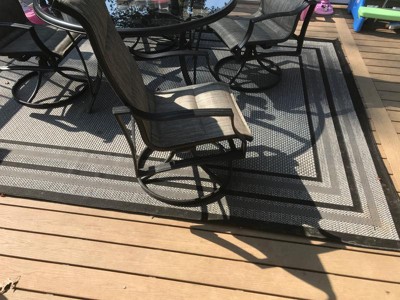 CARE: For an outdoor rug, remove debris frequently with the use of a broom or blower. To wash, spray the surface with a soap and water mixture, then rinse thoroughly with a garden hose and hang over a railing to dry thoroughly. Rotate for even wear.