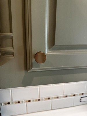[This review was collected as part of a promotion.] We purchased the bronze Amerock Cabinet Knob. It looks great on our new bathroom vanity cabinets. It has good weight and substance.
