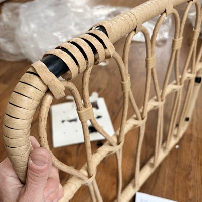 【Dimensions & Package Contents】This outdoor garden furniture set includes 2 high-back rattan armchairs, 2 seat cushions, 2 soft back cushions, and 1 rattan-wrapped round coffee table. Chair dimensions: 24.8" x 25.2" x 28.7", Table dimensions: 18.1" x 19.7".