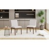 Elevate your dining room with this set of two fabric dining chairs. Their legs feature a stunning finish, and the squared-off design is both stylish and timeless. These chairs are not just about looks; they offer a comfortable seating experience that allows you to enjoy your meals to the fullest. Unlike many bulkier dining chairs, they provide a sleek and unobtrusive presence, enabling you to dine with both style and ease.
