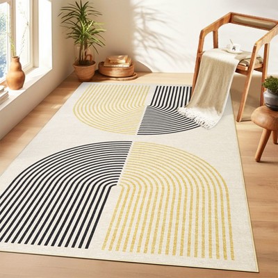 Geometric Stripe Machine Washable Rug With Non-Slip Backing Modern Non Shedding Indoor Carpet Stain Resistant Easy Cleaning Carpet