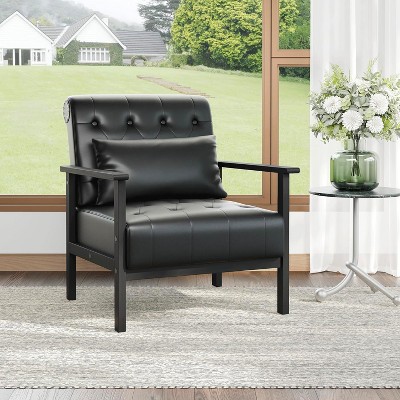 CAVINAS Faux Leather Accent Chair with Curved Backrest and Wood Base,Cozy Upholstered Living Room Chairs,Reading Chairs for Living Room