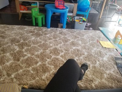 Bought this rug about a month ago for my small TV room and I love it. It feels great on your feet and it’s a absolutely gorgeous area rug over my hardwood floors.