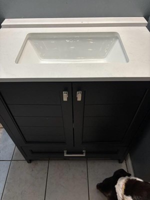 [This review was collected as part of a promotion.] I have had this vanity installed for a little while now and it's been a wonderful upgrade from a sink that was broken after the ceiling vent fell and broke the previous sink. If I had known a little more I would have possibly chosen a different faucet, because the short depth of the sink can sometimes lead to a lot of splashing with the faucet at full power. At first glance, this vanity looks great, but when you look closer, it’s a little cheap. The wood is easily scratched and the thin veneer can be scraped by accident with a fingernail. I wouldn’t expect it to hold up for years if you’ve got kids or a high-traffic bathroom. That said, it's perfect for a rental unit, a budget-friendly bathroom upgrade, or as a DIY project. I will likely need to repaint it in a couple of years based on how much has already come off. Assembly is about as intimidating as building a bookshelf. If you’ve done that before, you’ll have no problem here. It’s more open in the back, which can be convenient for plumbing but feels a bit unfinished. The proportions are slightly off with the sink top higher quality than the cabinet itself, which makes the cabinet’s super-thin veneer stand out more. The drawer is usable but flimsy, and the guides could definitely be smoother. It's basically a bookshelf with a marble sink top and for the look it's nice. An affordable way to upgrade without having to take out a loan just for a nice looking sink.