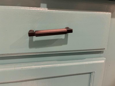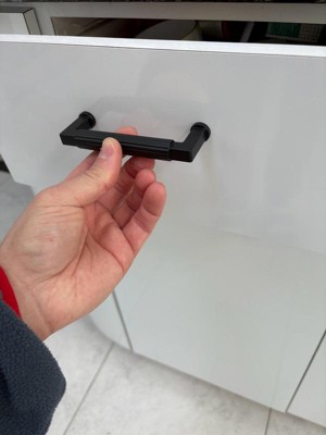 [This review was collected as part of a promotion.] This cabinet handle is well made, has a good weight to it, is finished in a matte black color that matches my home decor, and installs easily with 2 screws. You just need to drill two holes to fit the screws through the cabinet and then you screw them to the handle, super easy install.