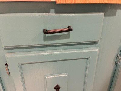[This review was collected as part of a promotion.] I think the mallard mat black cabinet pole is really pretty on this color cabinet so excited. They are very sturdy. Have a great finish and fit my cabinet perfectly.