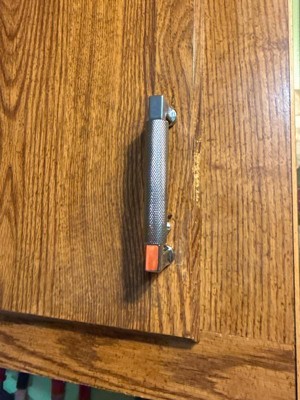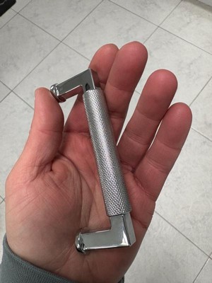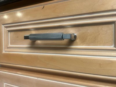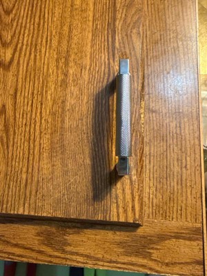 [This review was collected as part of a promotion.] From the moment I opened the package I could tell this was a quality piece of machined metal. I know that sounds weird but the weight of it and the engraving were very indicative of quality. Installation was breeze, two screws into the back and voila! Fits the standard cabinet handle holes. 2.5 or 3” something like that. Now I need about 12 more to finish out the kitchen!