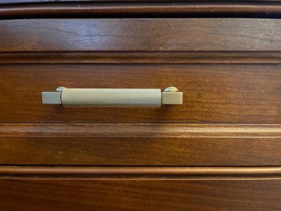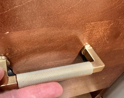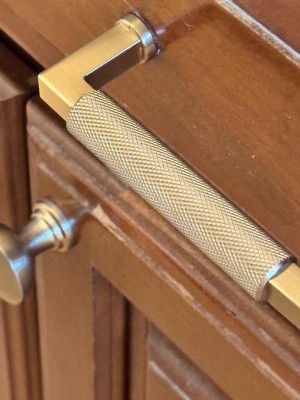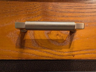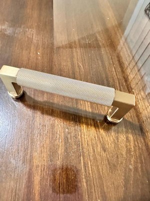 [This review was collected as part of a promotion.] Nice bronze handle for our other drawer on storage cabinet in our kitchen. Loved the texture of the handle. Easy to grip . Great set up and didn't take long Size is good and weight is good for the drawer. Very sturdy and makes our drawer nice decor touch.