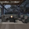 Includes: 1 Left Arm Sectional Piece, 1 Right Arm Sectional Piece, 2 Rocking Chairs, 1 Firepit Table, Seat and Back Cushions