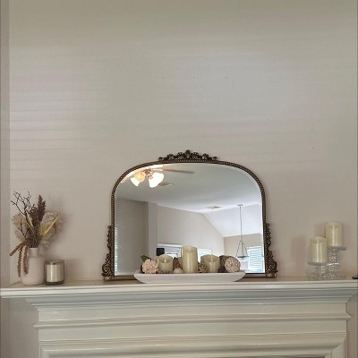 BEAUTYPEAK Arched Vintage Baroque Bathroom Vanity Mirrors 32"x44",Brown