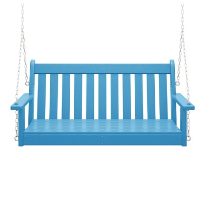 Costway 2-Seater Toddler Porch Swing Chair with Metal Stand Adjustable Canopy Safety Belts Yellow