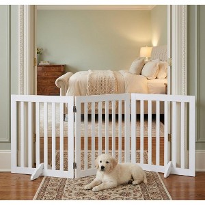 - MODERN & STYLISH: This dog gate is an excellent way to limit your pet's access to parts of your home while maintaining a modern appearance. The white finish and minimalist look of this indoor dog fence is sure to complement any decor.