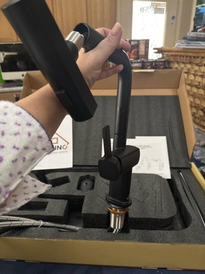 [This review was collected as part of a promotion.] I first want to say I love the black color of this faucet. It is a very sleek looking faucet also. I really like the design of the sprayer. It tucks away nicely in the actual faucet. With that said I was not able to actually have it installed yet. My husband had rotator cuff surgery and so I have to wait until his recovery. I’m very excited to get to use this in the future! I will post installed pictures later!