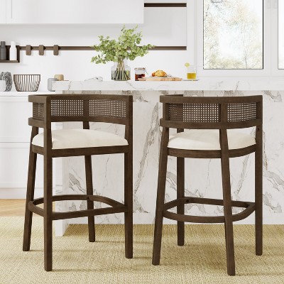 Christopher Knight Home Marie Contemporary Rubberwood Upholstered Bar Stools with Curved Rattan Back (Set of 2)