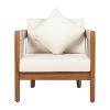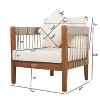 Bring rustic charm and comfort to your outdoor space with the club chair. Crafted from durable, naturally weather-resistant acacia wood, this chair features handwoven rope detailing along the frame, adding artisanal character to its clean, rustic lines. The gracefully curved back provides ergonomic support, while plush, weather-resistant cushions offer lasting comfort. Designed to withstand the elements, this club chair combines timeless style with durable construction, making it a perfect addition to your patio, deck, or garden retreat.