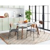- Use a 5' x 8' rectangular rug in smaller dining areas with a table and 4 to 6 chairs.