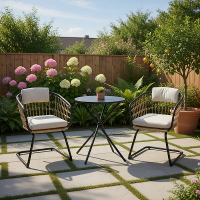 • COMFORTABLE SEATING: Thoughtfully designed with gently curved backrests and contoured seats, the chairs deliver ergonomic comfort and support—perfect for relaxed dining, morning coffee, or unwinding outdoors in refined style.