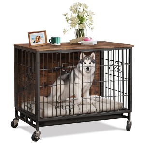 - Stylish and Functional Furniture: The sturdy top panel holds up to 100 lbs, allowing this dog kennel to double as an end table. Add charm to your space with your favourite decor while maintaining functionality. Chew-Resistant Durability: Constructed from resilient particleboard and steel, this dog crate resists the most enthusiastic chewers. The full-view metal enclosure ensures a well-ventilated and clean space, providing a long-lasting haven for your pet.