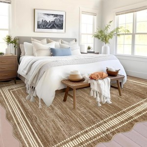 • 【Modern Scalloped Design Meets Durable Construction】Elevate your space with 1200gsm heavy-duty polyester construction and 350gsm plush pile that combines durability with cloud-like softness. The abstract scalloped edges and geometric border create contemporary sophistication for living rooms, bedrooms, or home offices. Neutral tones and subtle embossed patterns blend seamlessly with farmhouse, modern, or transitional décor. Reinforced overlock edges prevent fraying in high-traffic areas like entryways and dining rooms.