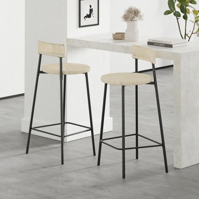 KTMBDW Bar Stools Set of 2, Counter Height Bar Stools with Back, Handwoven Paper Rope, 26.5-Inch Tall Barstools for Kitchen Island Home Bar, Natural