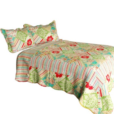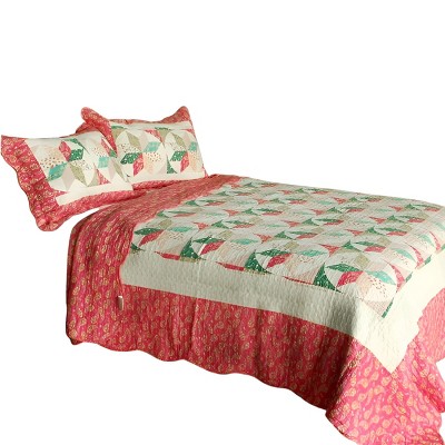 Slickblue 3PC Cotton Vermicelli-Quilted Quilt Set, Full/Queen Size with 2 Shams, 6 Design Options