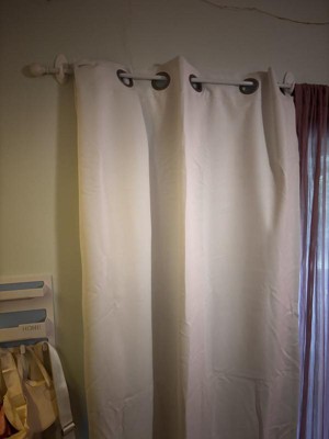 I am currently waiting on our bedroom to be finished before I hang these, we are almost finished. I love these curtains! Each panel uses the tri weave design method which has three high density polyester fabric pieces sewn into one seamless drape. Easy to install just slide the stainless steel grommets through any 1.5 inch curtain rod.