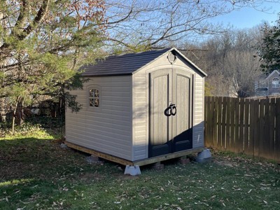 Such an improvement over my old 8x8 wooded shed. Easy to follow instructions. Only hard part was the making sure corners locked into flooring, very difficult. Need to somehow make it more easier to puck corners into floor.