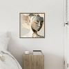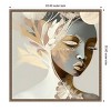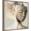 The artwork depicts an elegant female figure intertwined with abstract leaves and natural elements. The color palette is muted, featuring earth tones and gentle pastels, creating a harmonious and ethereal feel. The composition blends organic forms and soft textures, conveying a sense of tranquility and modern sophistication. This canvas art print was created by Bella Eve and printed in Waunakee, WI. It is stretched across a solid surface to resist sagging. We use only premium, high-tension canvas. Our exclusive stretching techniques hide corner folds and provide a taut canvas surface. The artwork is authentically licensed. The canvas appears as if it is floating in the frame because it has a narrow gap between the edge of the canvas and the frame. Our canvas items are individually made using traditional custom framing techniques, it has the quality you would expect from your local frame shop.