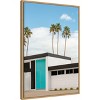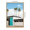 The artwork features a modern building with a striking turquoise door set against a clear blue sky. Tall palm trees rise elegantly in the background, adding a tropical flair. The structure's clean lines and minimalistic design create a serene and stylish visual. This canvas art print was created by Tom Windeknecht and printed in Waunakee, WI. It is stretched across a solid surface to resist sagging. We use only premium, high-tension canvas. Our exclusive stretching techniques hide corner folds and provide a taut canvas surface. The artwork is authentically licensed. The canvas appears as if it is floating in the frame because it has a narrow gap between the edge of the canvas and the frame. Our canvas items are individually made using traditional custom framing techniques, it has the quality you would expect from your local frame shop.