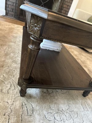 Absolutely love this coffee table. Great size, color, fabulous character with the design.The material is perfect as it doesn’t scratch as well as you don’t have to worry about water rings on the wood. This was the easiest piece of furniture I have ever put together. Very sturdy and a good weight to where it won’t slide around. Highly recommend.
